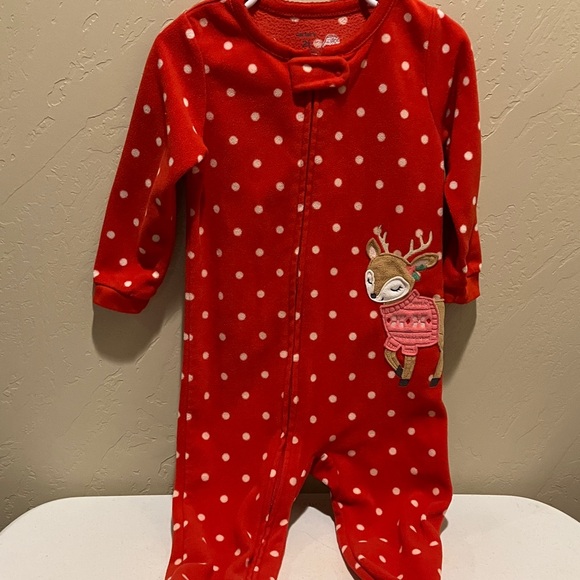 VG Carter's 2T Red Polka Dot Fleece Footie with Reindeer Very Sweet