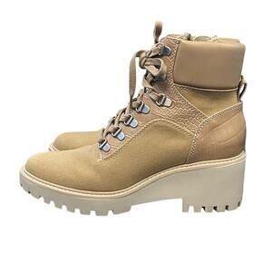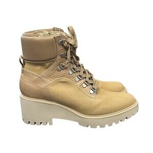 VGC Dolce Vita Hank Canvas Faux Leather Combat Winter Hiking Café/Tan Boots 8.5
