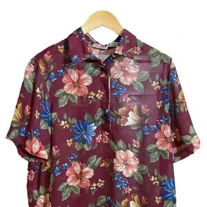 VGT ALFRED DUNNER Women's Dress Blouse Floral Print Elastic Hem Burgundy Size 16
