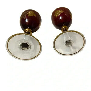 VGT Bohemian Czech Amethyst Gold Etched Ruby Glass Decanter & 2 Water Goblet