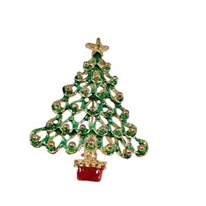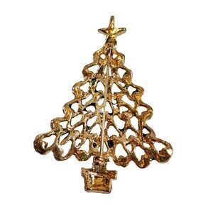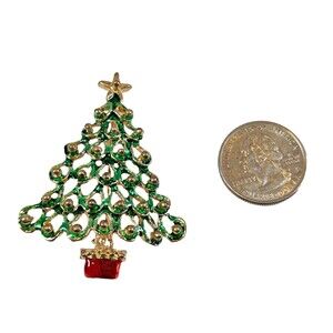 VGT Christmas Tree ~ Holiday Brooch - 1.75" x 2.25" Enameled Gold-Tone - 3 & 23