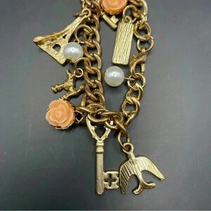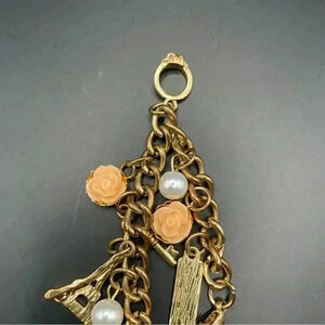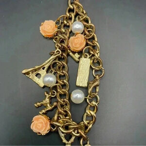 VGT Eiffel Tower & Floral Design Gold-tone Charm Stretch Bracelet for Girls