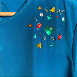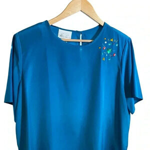 VGT Kathie Lee Collection Women's Jeweled Top Blouse Crew-neck Short Sleeve Blue 16