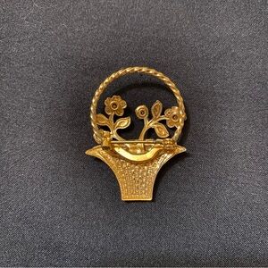 VGT Multicolor Gold-tone Rhinestone Flower Basket Brooch Pin