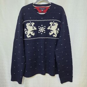 VGT Tommy Hilfiger Lambswool Crewneck Sweater Men's XXL Heraldic Lion Navy/Cream