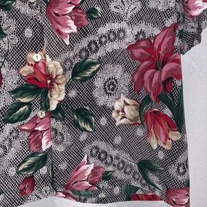 ALIA vintage floral oversized funky button down top with slight textured material patterned with lace and large flower design. Gorgeous feminine small vintage buttons. Excellent vintage condition. Women’s size 16. See measurements below.