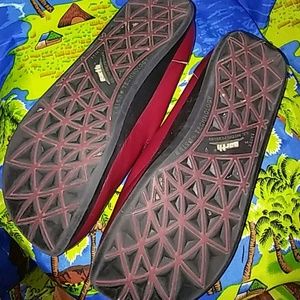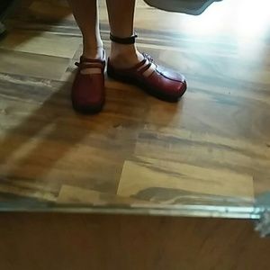 Red leather Mary Jane style with low heel. Earth shoes are designed to make you stand on your heels, lengthening your legs. Slight wear on the toes. Very good condition.