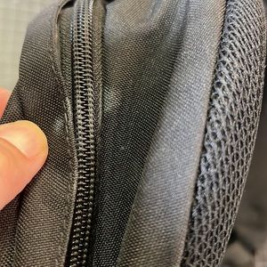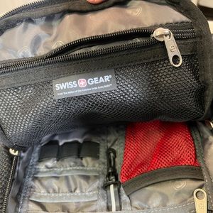 VGUC Swiss Gear mini bag that you can sling across your back or your chest when traveling. A great little bag. Only selling it because my mom gave me hers (that has sentimental value). There is one little spot along the zipper and I don’t know what it is. I haven’t tried to remove. Approximate measurements 11 x 13 x 4.5”. Clean interior. From a smoke free and dog friendly home.