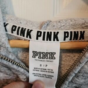 VGUC Victoria's Secret PINK quarter zip hooded sweatshirt Size small gray navy