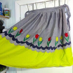 VGUC Vintage Handmade Gingham and Chartreuse Tulip Apron OSFA