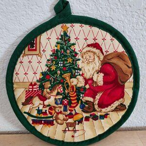 Vintage Handmade OLD WORLD Santa w/ Toy Bag Green Christmas Pot Holder