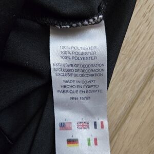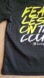 2. Champion 100% polyester black short sleeve athletic T with "Fear Less on the Court" in yellow and white, 4, VGUC **left sleeve with hem unraveled, see picture.