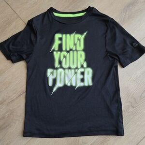 1. Champion 100% polyester black short sleeve athletic t-shirt with "Find Your Power" in neon green / acid yellow, XS (4/5), EUC.