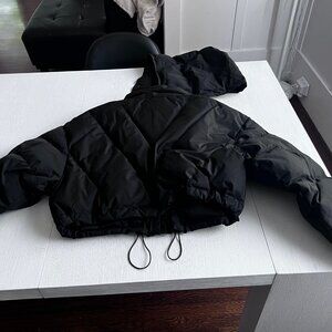 VHNY HEAVYWEIGHT BLACK PUFFER CROP COAT WITH REMOVABLE HOOD SIZE MEDIUM