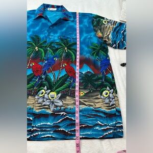 V.H.O. Blue and Green Casual Button Down Hawaiian Front Pocket shirt