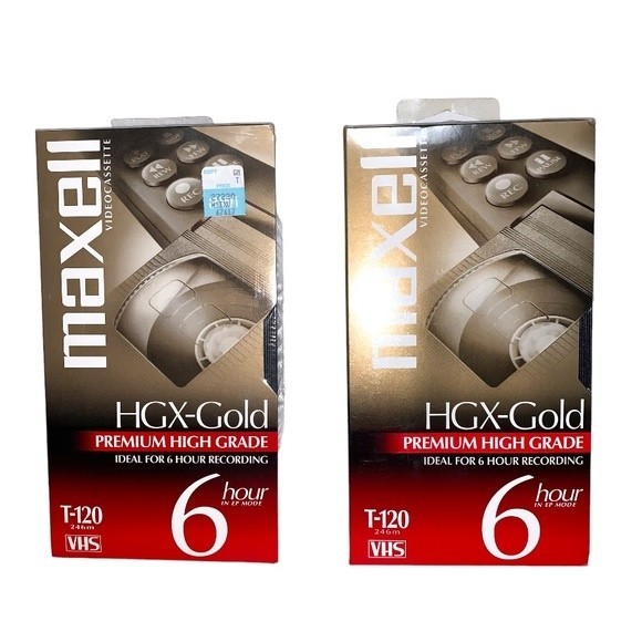 VHS Blank Tape Maxell HGX-Gold T 120 6 Hour VHS Tape Lot of 2 Sealed Cassette