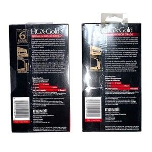 NIB VHS Blank Tape Maxell HGX-Gold T 120 6 Hour VHS Tape Lot Of 2 Sealed Cassette