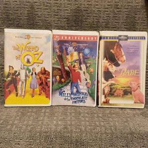 VHS Tape Bundle Willie Wonka- Babe- Wizard of Oz- Vintage Original Clam…