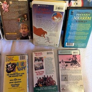 10 miscellaneous VHS tapes including The Muppets Christmas Carol, The Neverending story 3, The Pagemaster, A Cricket in Time Square, The Seventh brother, The Adventures of Rocky and Bullwinkle, Felix the cat, the mighty ducks, viva la Vegas, and the amazing instant aquarium! Open to reasonable offers and wouldn’t mind selling separately ($5 a piece)