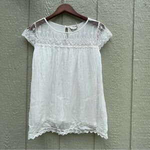 VIA SIGNORIA Top Blouse Womens S Ivory White 100% Silk Lace hem Lined Cap sleeve Fairy Floral Lightweight Made In Italy ;Elegant ;casual, office,party ,wedding , Luxury