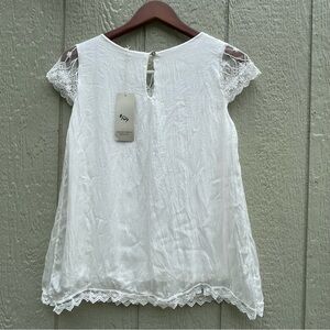 VIA SIGNORIA Top Womens S Ivory 100% Silk Lace Trim Lined Fairy Italy Made NEW