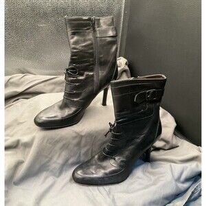 VIA SPIGA Ankle Boots Booties Stilettos 7M Black Leather ITALY~Gently Used