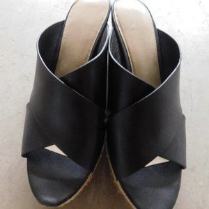 VIA SPIGA BLACK LEATHER ESPADRILLE HEEL SANDALS 9