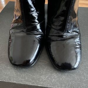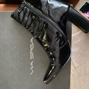 VIA SPIGA BLACK PATENT LEATHER BOOTIES WITH BOX