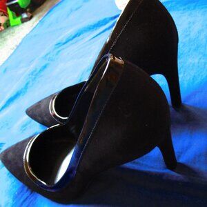 VIA SPIGA BLACK SUEDE HIGH HEEL SHOES-8.5M-NEW-W/LEATHER ACCENT-W/ORIGINAL BOX