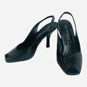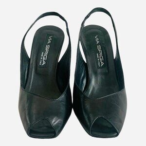 VIA SPIGA Black Leather High Heel Slingback Pumps Women’s Size 5