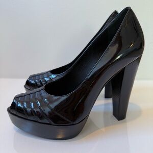 VIA SPIGA Black Patent Leather Platform Peep Toe Heels 7.5