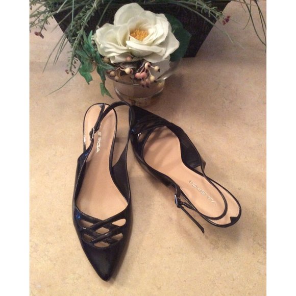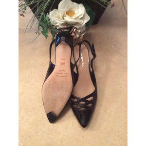 CL/9N/043023). VIA SPIGA VERO CUCIO Black Patent Leather Slingback Kitten Loafer US 7.5 EUC! $279.