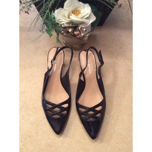 VIA SPIGA CUCIO Black Patent Leather Slingback Kitten Loafer US7.5 EUC! $279