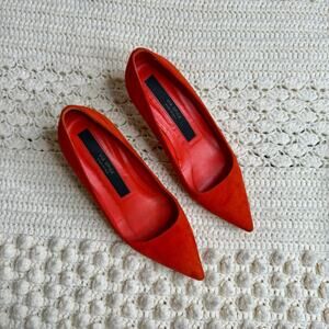 - VIA SPIGA Italy Women's Size 7 Nikole Suede Leather Pointed Toe Pumps Heels Orange Red -