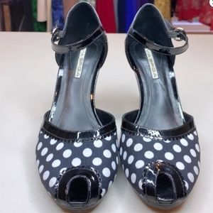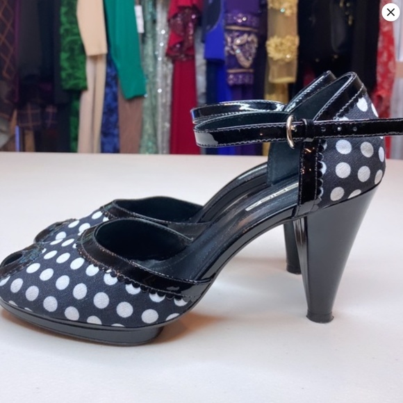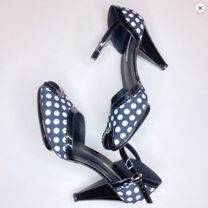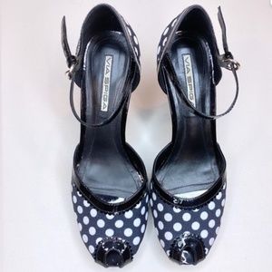 VIA SPIGA PAPA Retro White Polkadot Heels Color: Black White Navy Size: 8 Leather upper Leather sole EUC Heels: 4”