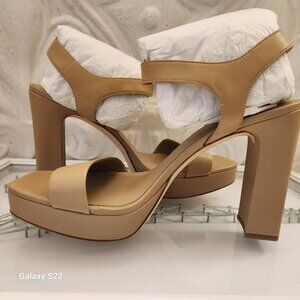 VIA SPIGA Saville Beige Nude Ankle Strap Leather Heels Pump Platform Sandal.