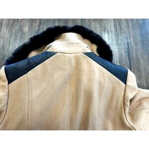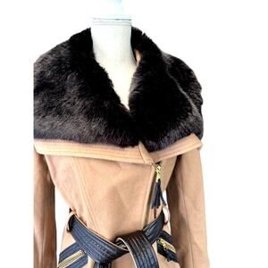 "VIA SPIGA" Stunning Wool Coat, Faux Fur Trim, Asymmetrical Zipper,Belted,8
