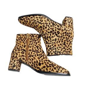VIA SPIGA Vinson Genuine Calf Hair Cheetah Print Block Heel Ankle Boots