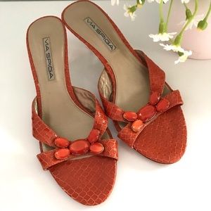 VIA SPIGA Women's Orange Leather Slip On Heeled Sandals Crystal Embedded Size 7