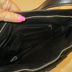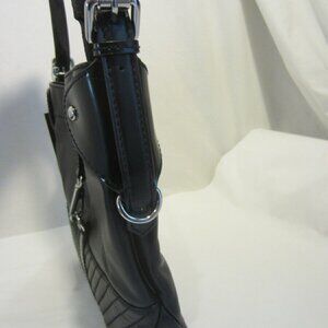 This is for a new purse with tags. It is Via Spiga brand and it retails for $225!!! It is a black color with silver hardware. It is a tote style purse with an adjustable single handle. It has a zipper closure and various compartments inside.