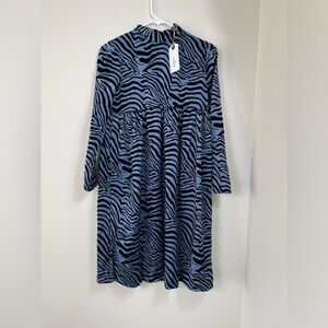 VIBE Blue and Black Zebra Print Dress Big Girl or Women's Size 14 NWT