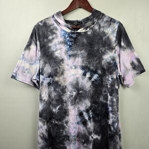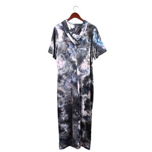 VIBE Sportswear Soft Tie Dye Maxi Dress Hooded Multi-colored Womens Plus Sz 2X