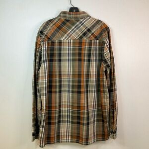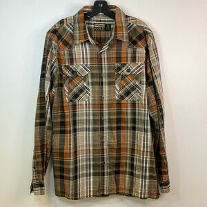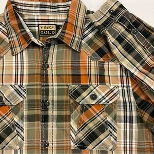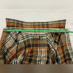 VIBES GOLD Button Front Plaid Long Sleeve Shirt Brown & Orange, sz XL