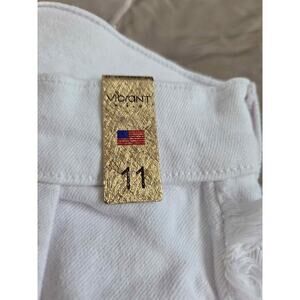 VIBRANT m.i.u "Snow-Edge Fray White Denim Jeans" intentional fringe/fray on the sides & back pockets, new with tags