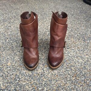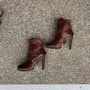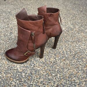 VIC MATIE Brown Leather High Heel Ankle Bootie EU 38