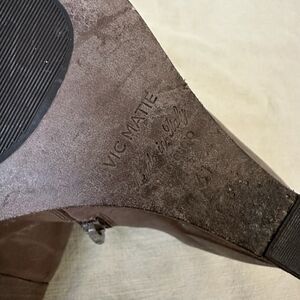 Elevate your shoe game with these stylish Vic Matie Wedge Booties. The brown leather upper with an almond toe shape and hidden heel is accented with a trendy zipper closure. These ultra high wedge boots with a heel height of 4 inches and higher are perfect for any casual occasion. The leather lining and insole provide comfort while the leather outsole ensures durability. These boots are made in Italy and come in EU shoe size 41 and US shoe size 11. The solid pattern and ankle bootie style make them a versatile addition to any wardrobe. Don't miss out on the chance to add these stunning Vic Matie Wedge Booties to your collection.