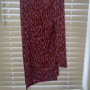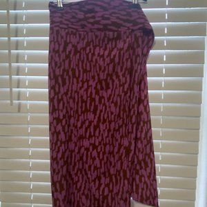 Sarong-style wrap midi skirt in pink and dark red abstract pattern. Ties at the waist for an adjustable fit. Worn once and in excellent condition. Perfect for summer vacation!