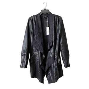 VICI Black Faux Leather Jacket Women's Size M Asymmetrical Zip Draped Coat NWT
