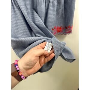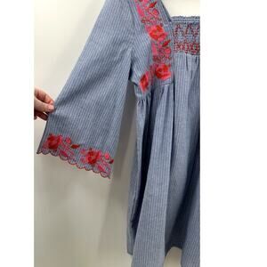 VICI Boho Blue White Stripe Floral Embroidered Mini Flowy Dress Medium