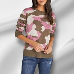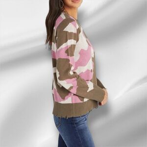 VICI COLLECTION Women’s Distressed Camo Pattern Sweater in the Size Large in Pink/Olive Color